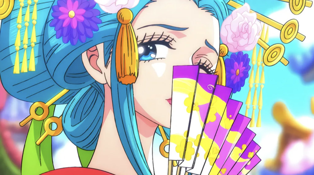이쪽은 설명이 길 필요도 없다. 와노쿠니 편에서 코무라사키가 처음 제대로 등장했을 때 분위기 씹어먹었다. 원피스 세계관 안에서도 절세미녀 취급을 받는 데는 이유가 있다. 전통적인 일본풍 미인을 원피스 스타일로 극대화한 결과물이 바로 히요리다. 긴 머리, 화려한 기모노, 여유롭고 도발적인 표정, 고개를 살짝 틀어 바라보는 연출 하나하나가 다 계산되어 있다.